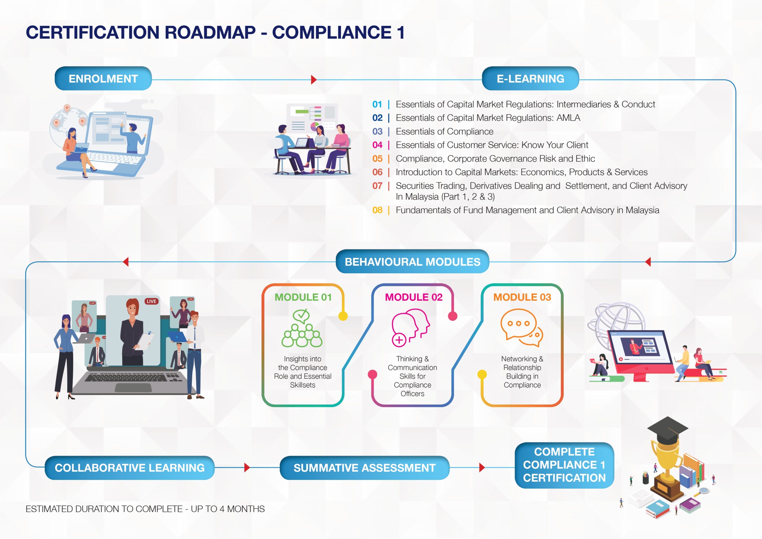 This e-learning programme is designed to equip and provide participants in the capital market with a deeper understanding of the essential Compliance concepts, functions, approaches, tools and skillsets on capital market laws, principles and regulatory requirements, technical areas, and general activities of intermediaries.