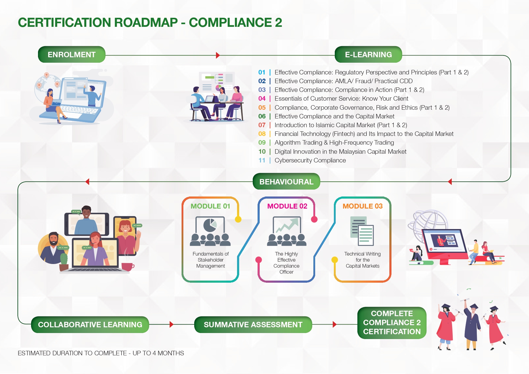Certified Capital Market Professional (CCMP) – Compliance 2 is designed for compliance professionals with relevant experience looking to upskill their competencies further to be more effective as compliance officers.